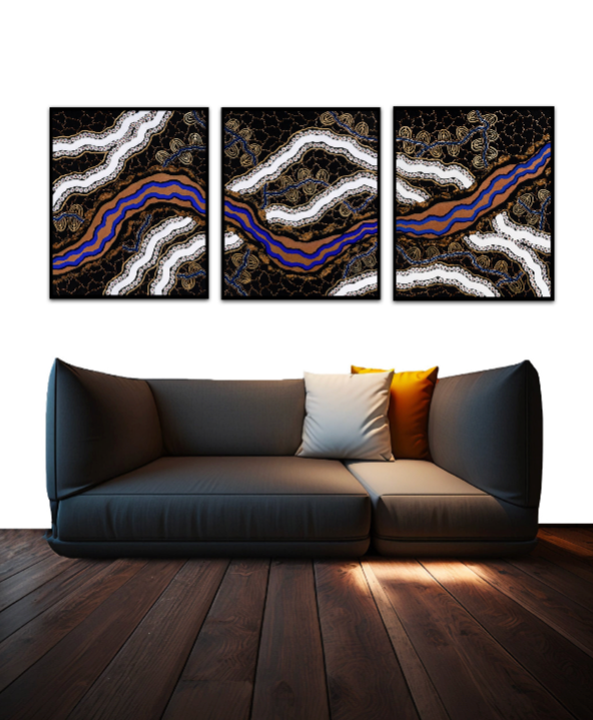 This artwork is available on stretched lustre canvas. Framing options include Raw Flooded Gum or Solid American Ash stained satin black.